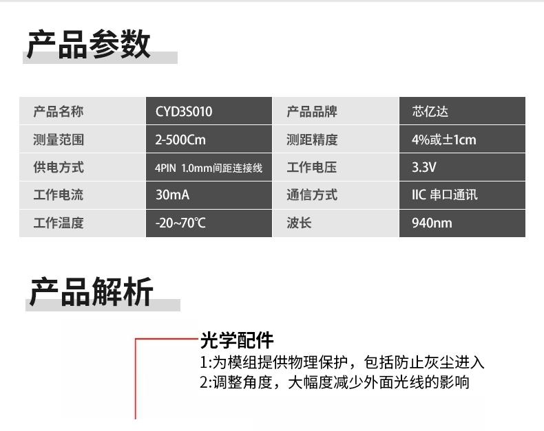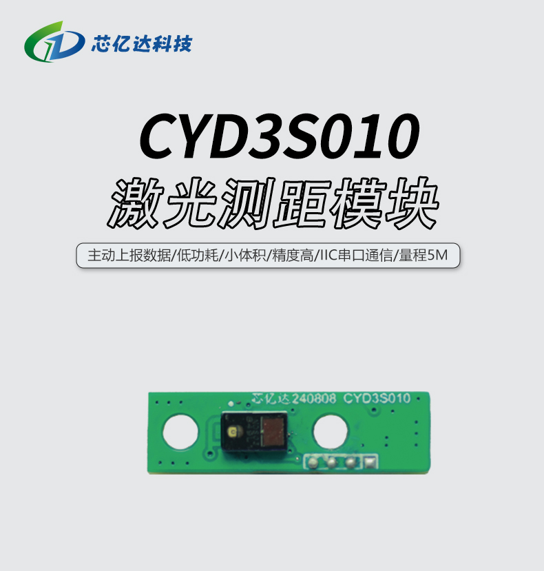 CYD3S010 是一款激光测距专用模块 ,可针对不同材质的物体 ,提供高精度的距离测量 。探测距离为20 mm~5000 mm;可应用于多种近距离距离测量场景。