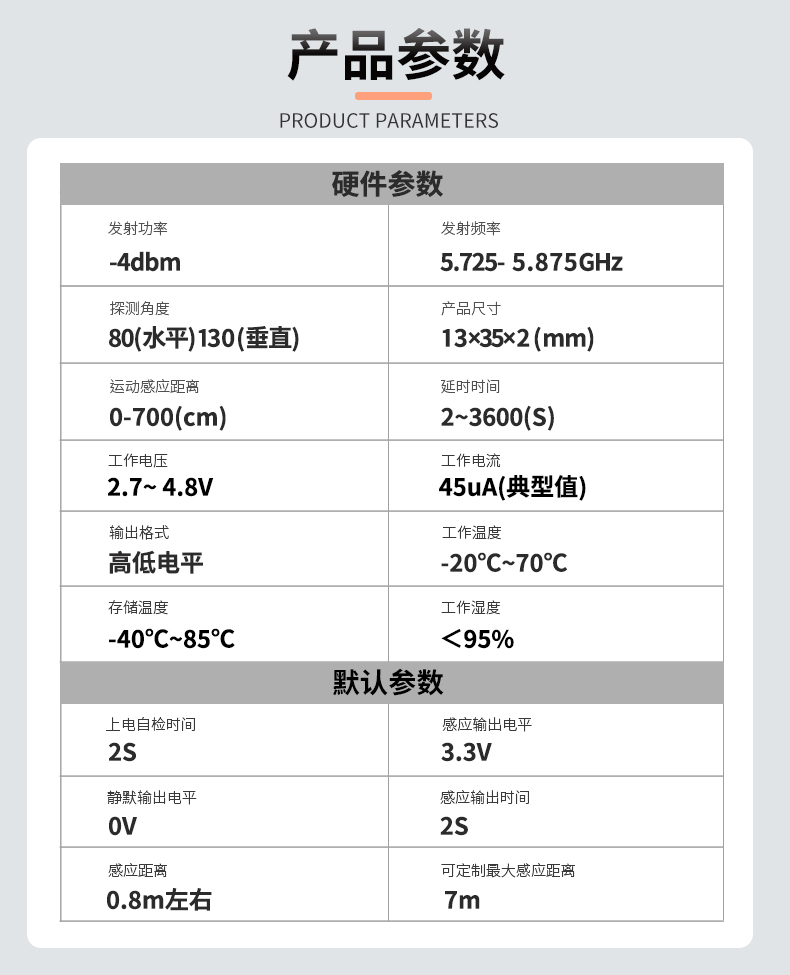 为方便客户方案实施,特预留探测距离、延时等参数可通过软硬件方式灵活调整,加速开发效率,提升普适性。