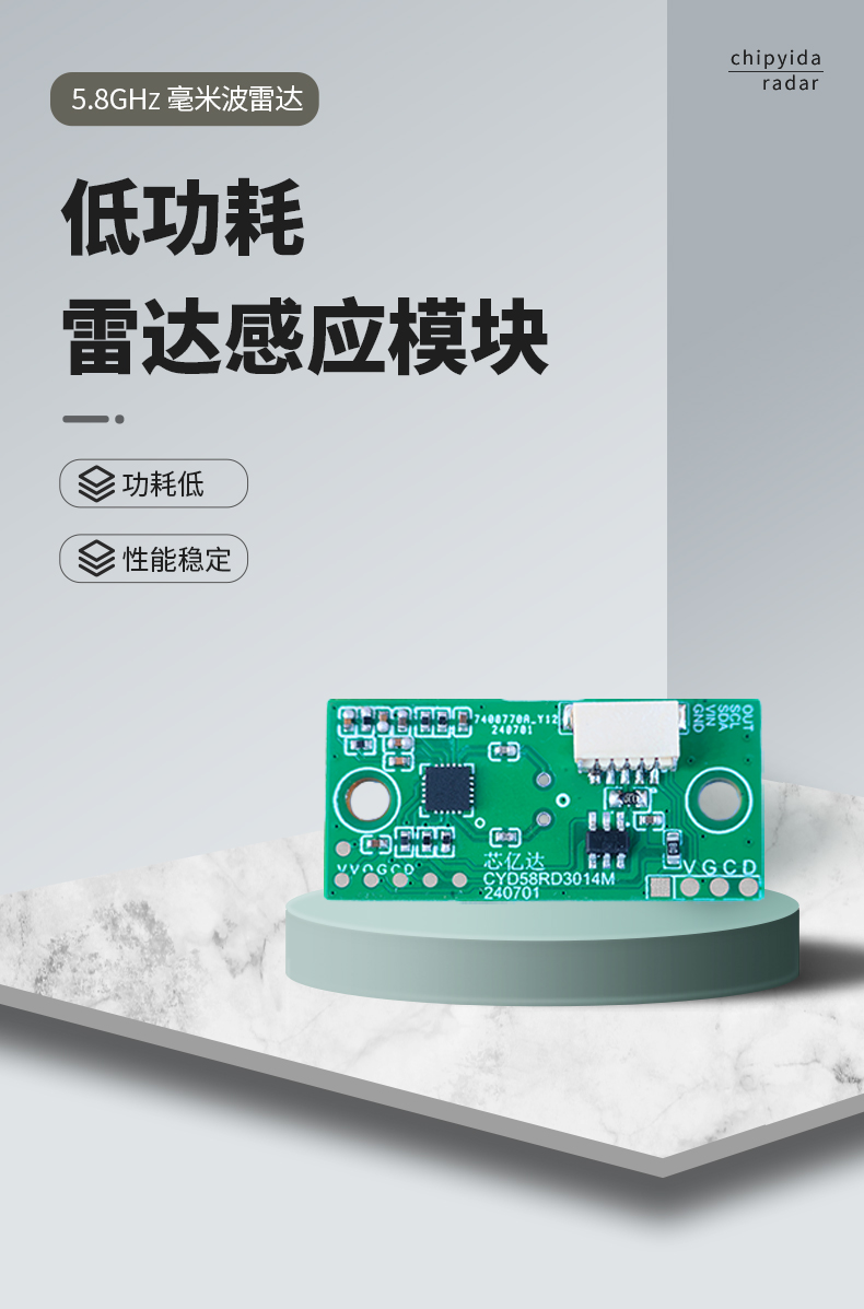 该微波感应雷达模组该是芯亿达自主研发的小型化、微安级超低功耗的5.8G雷达传感器模组。通过雷达工作原理,实现对运动和微动的场景感知,落地应用于多种场景应用的智能化判断,助力打造智能空间。