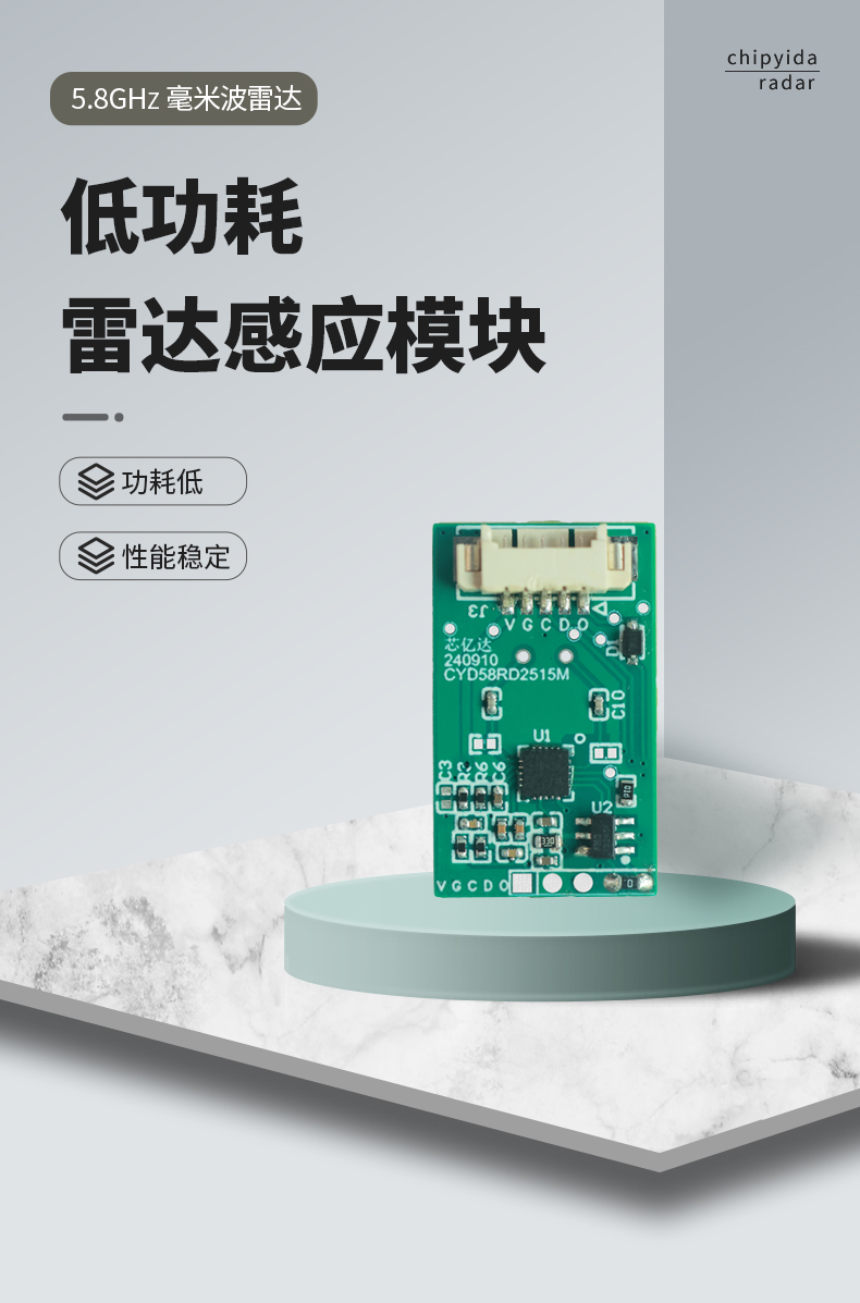 该微波感应雷达模组该是芯亿达自主研发的小型化、微安级超低功耗的5.8G雷达传感器模组。通过雷达工作原理,实现对运动和微动的场景感知,落地应用于多种场景应用的智能化判断,助力打造智能空间。