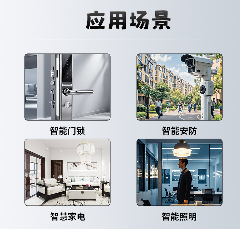 它聚焦智慧安防/智能门锁/智能宠物饮水机/智能捕鼠器领域的应用,如各种类型的智能门锁,其他领域的应用可拓展。